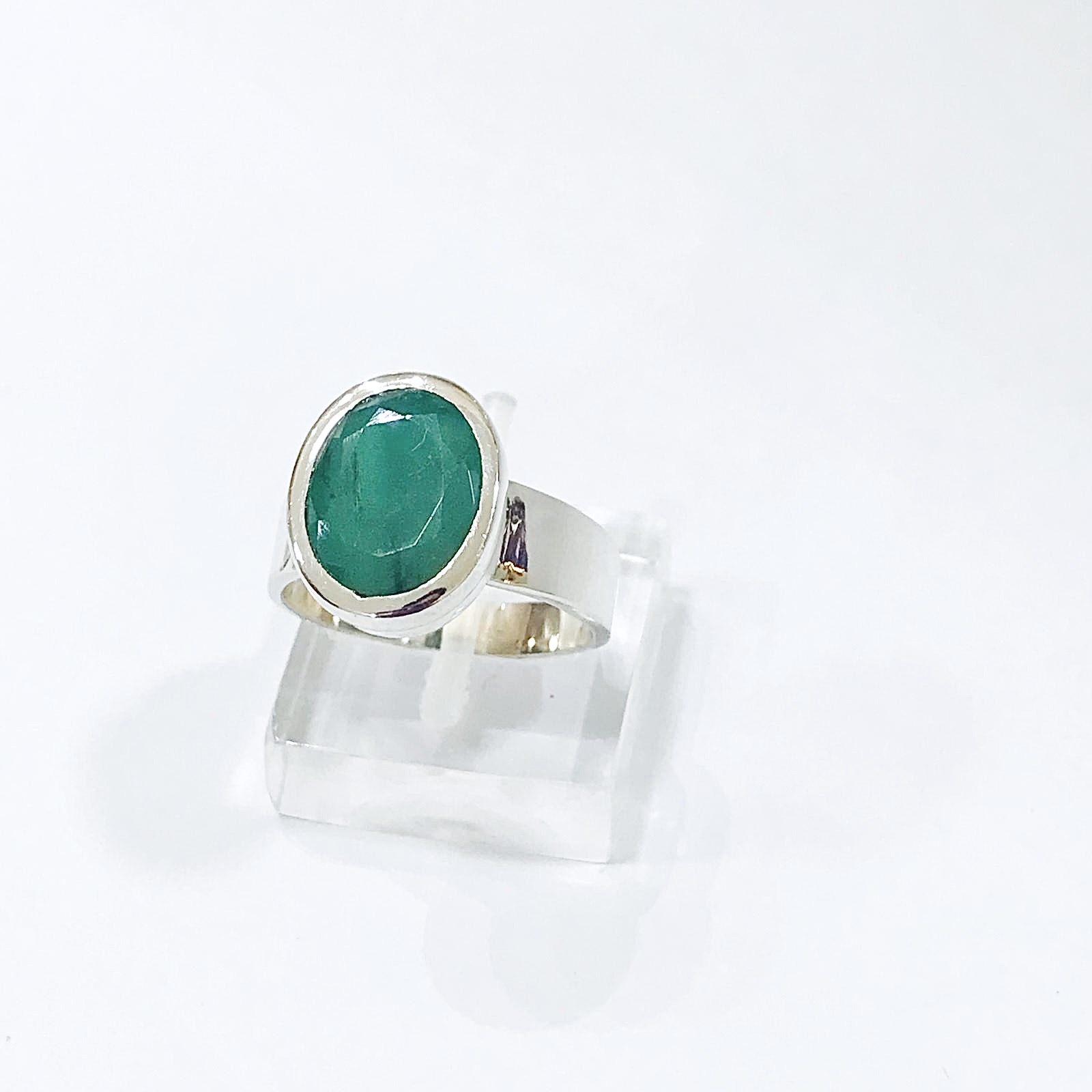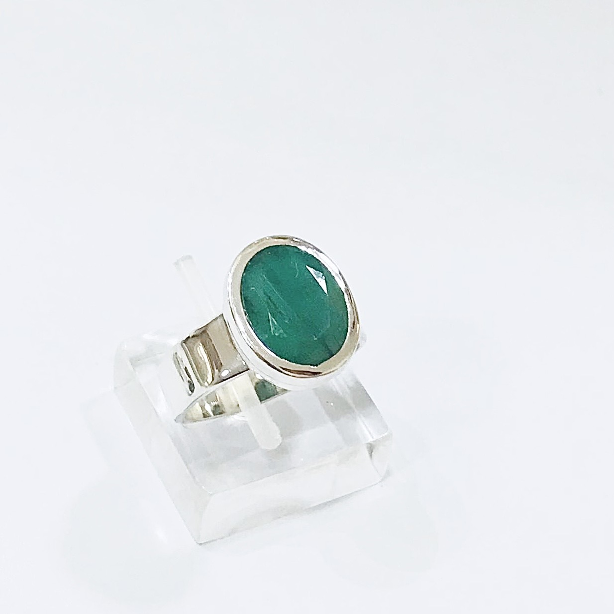 Anillo plata 925 piedra natural esmeralda .