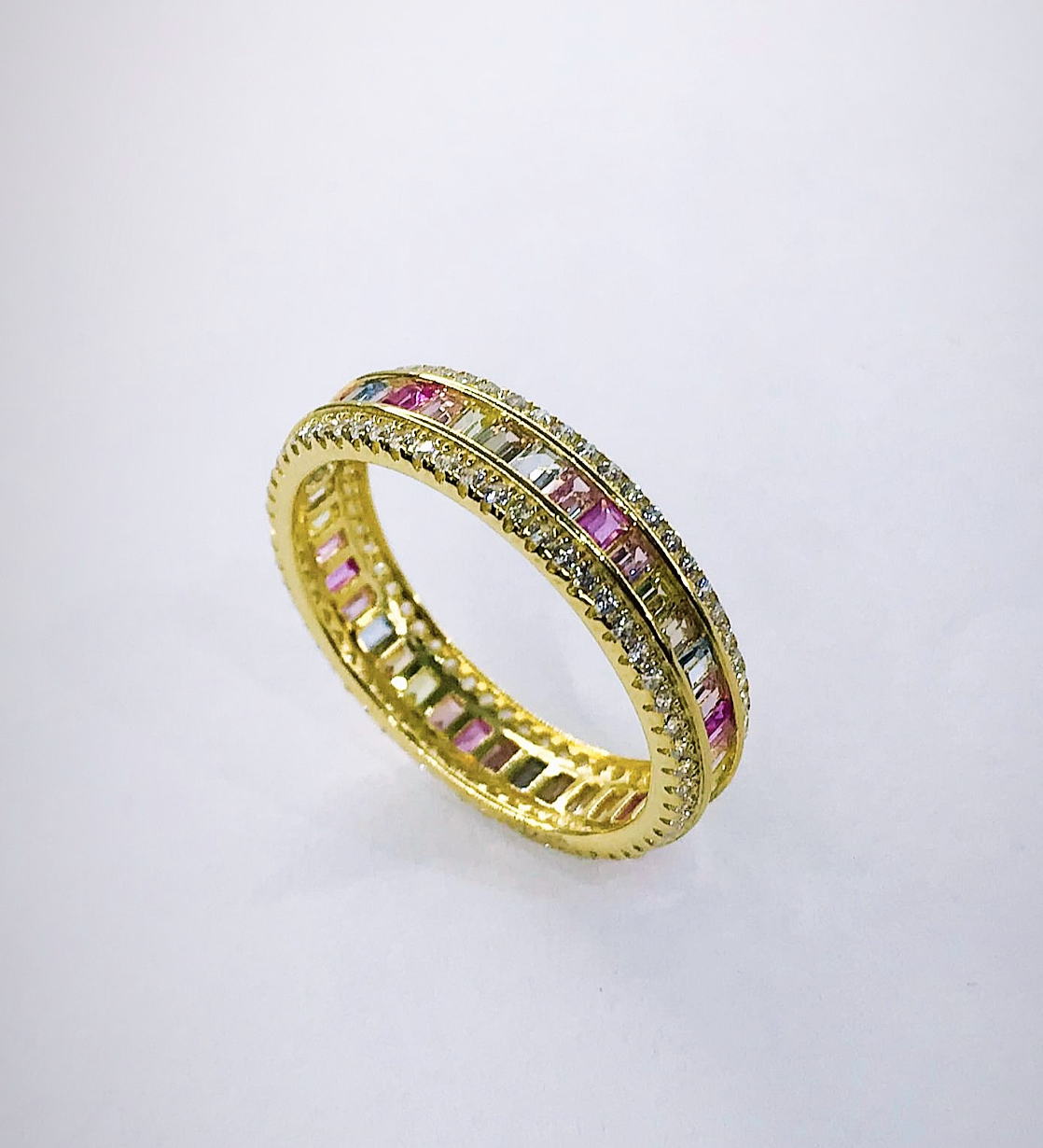 Anillo plata 925 golplated sin fin , diamantina multicolor cubic .