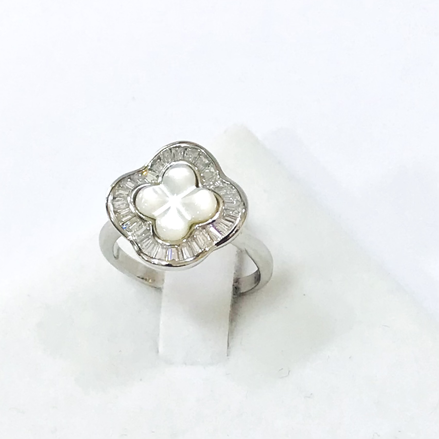 Anillo plata 925 nácar y cristal checo modelo trébol