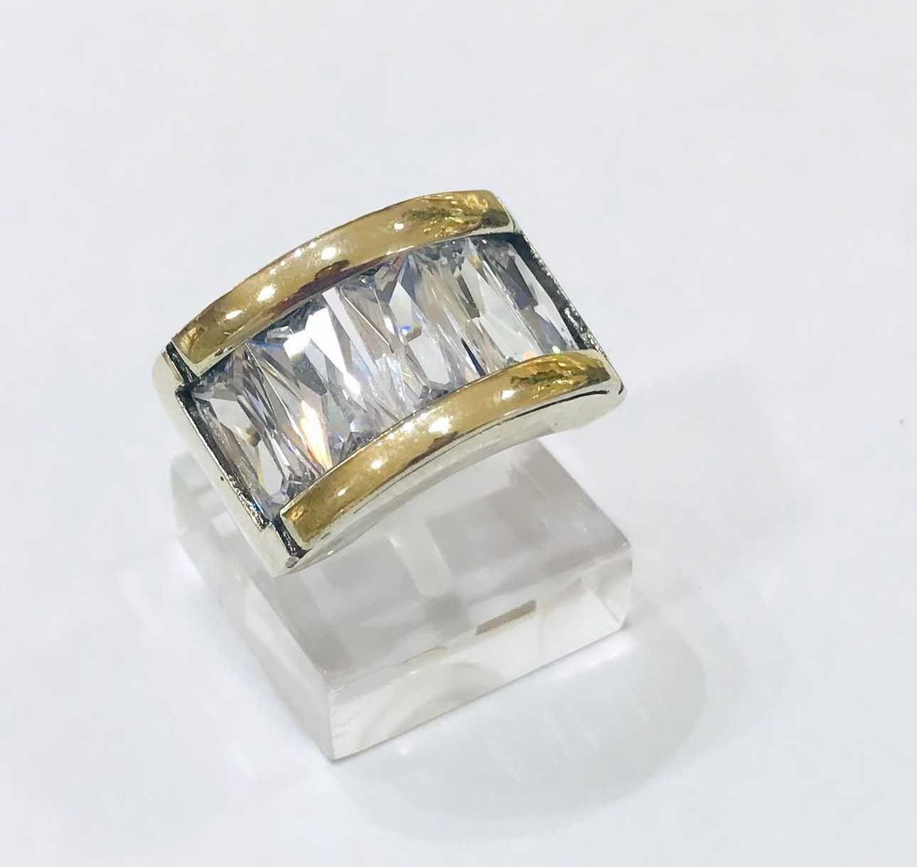 Anillo plata y oro diamantina italiana .