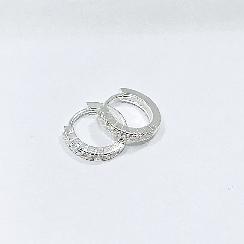 Par caravana aro plata 925 medio sin fin diamantina italiana