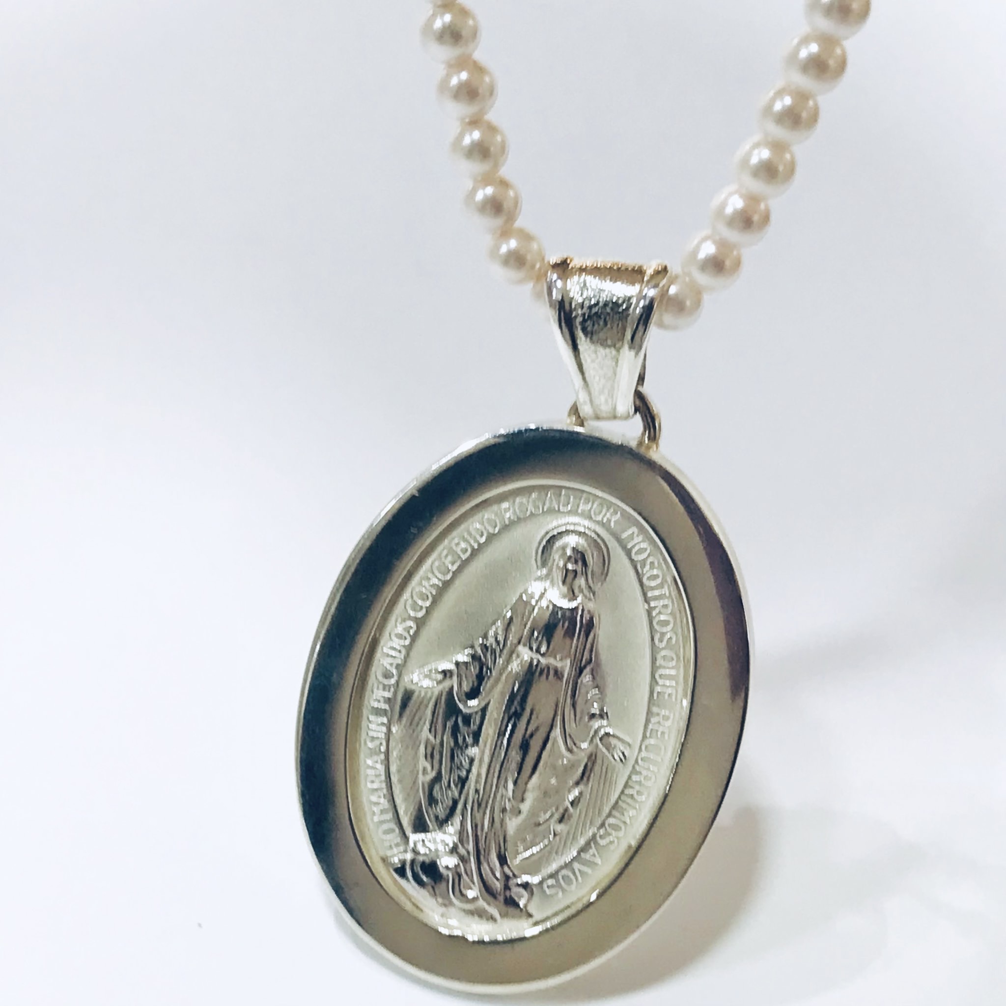 Collar perla agua dulce con medalla plata 925 imagen Virgen Milagrosa