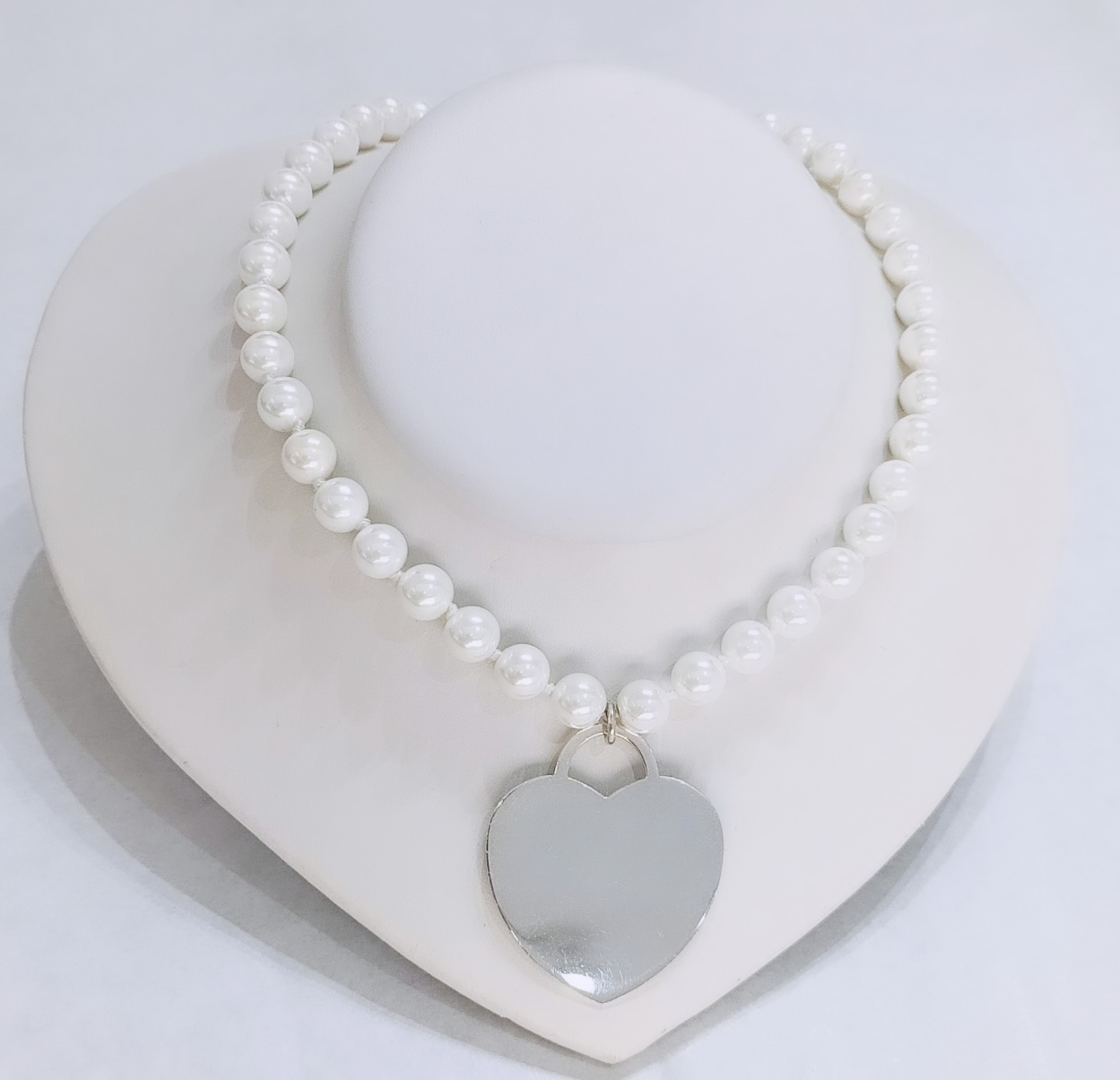 Collar plata y perlas Swarovski con corazón plata Tiffany grande