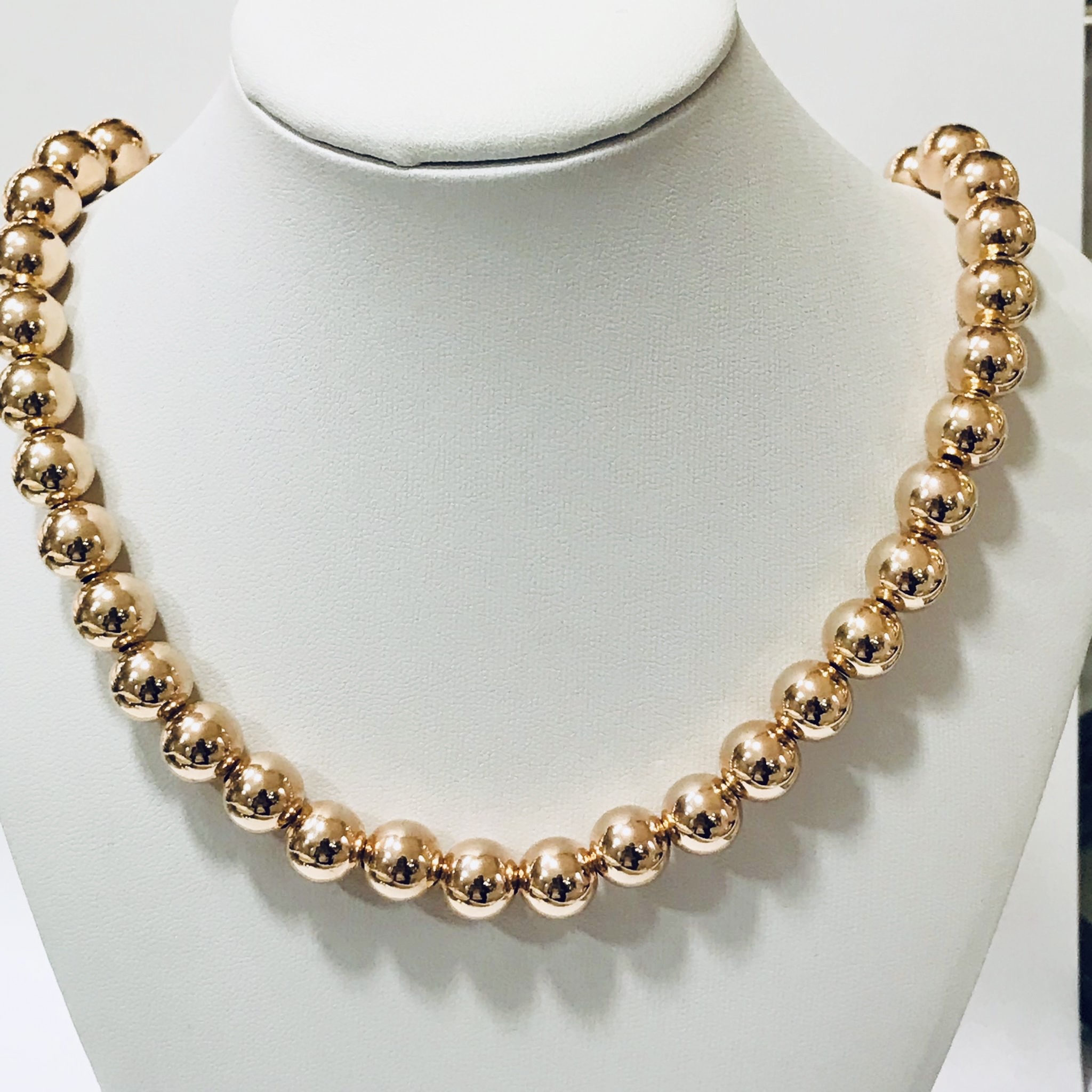 Cadena plata bolas ,galvanica 18kts rose , cierre mosqueton .