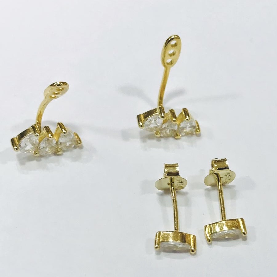 Par caravana plata 925 goldplated , diamantina italiana .