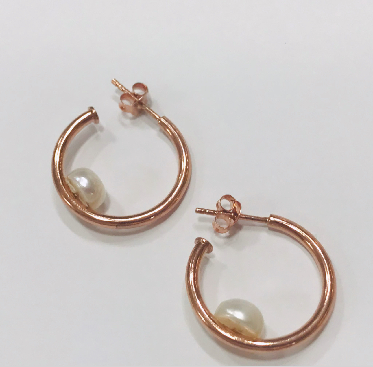 Par caravana plata 925 goldplated rose , perla cultivo agua dulce .
