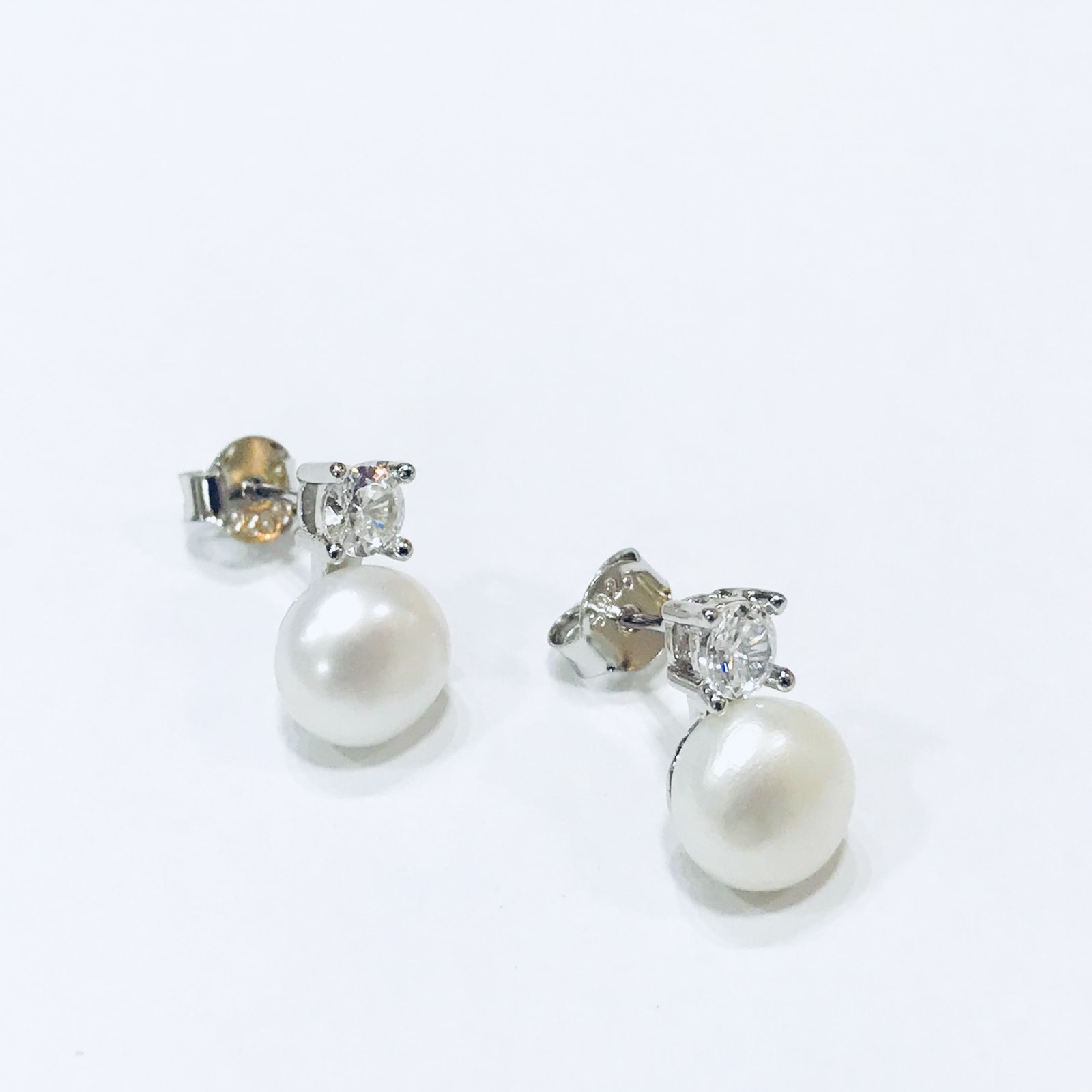 Caravana plata 925 perla cultivo agua dulce y diamantina italiana