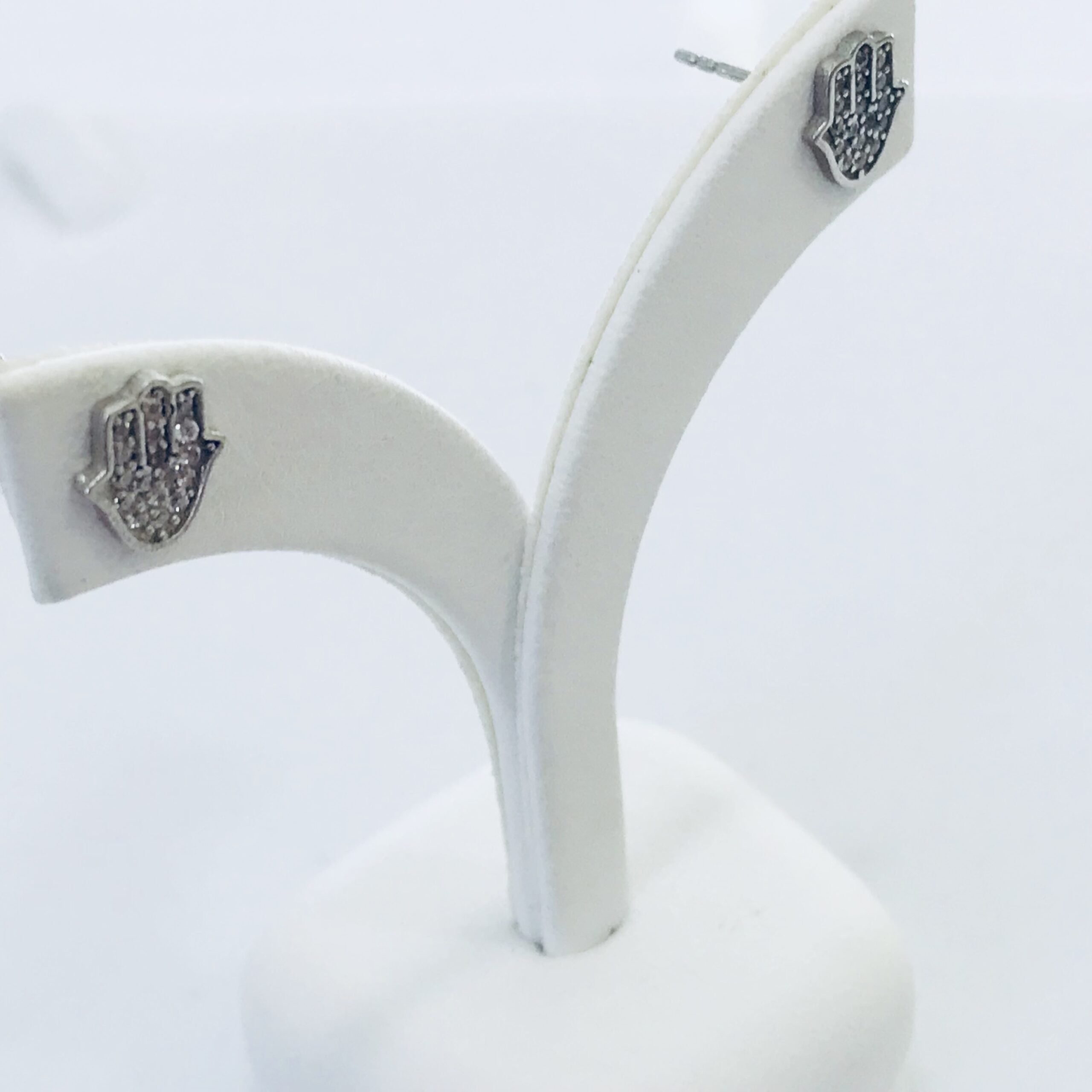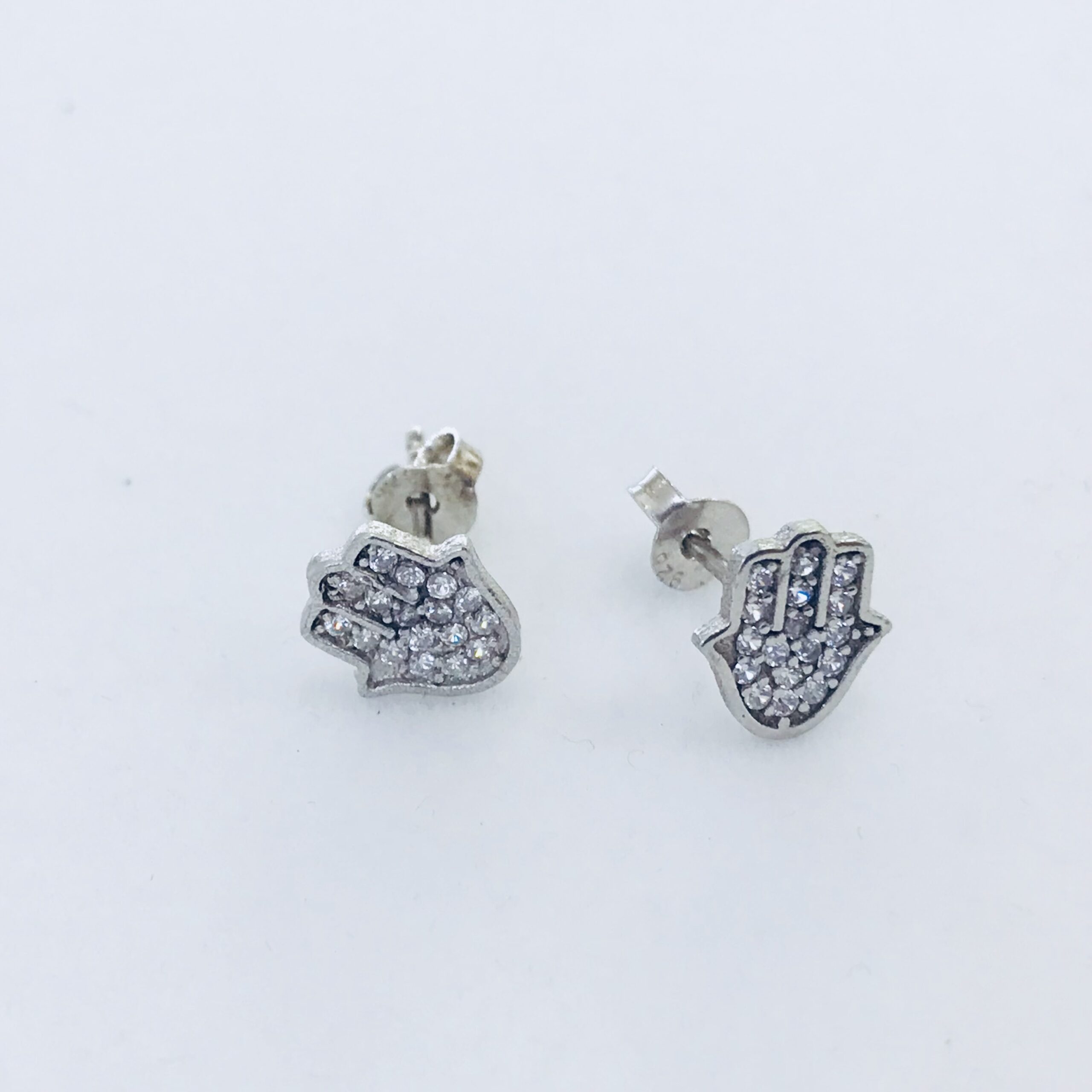 Par caravanas plata diseño mano mini ,cristal diamantina .