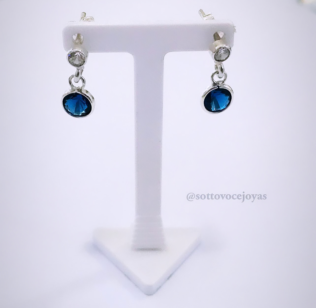 Par caravanas plata colgante , cristal diamantina azul .