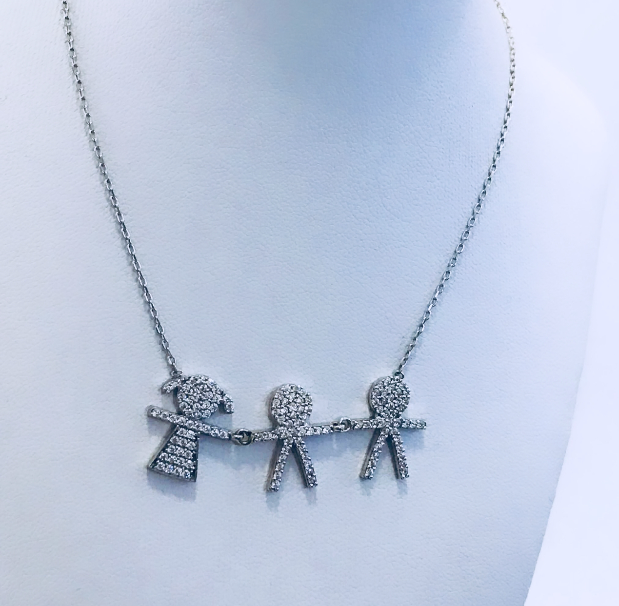 Cadena plata tres hijos cristal .