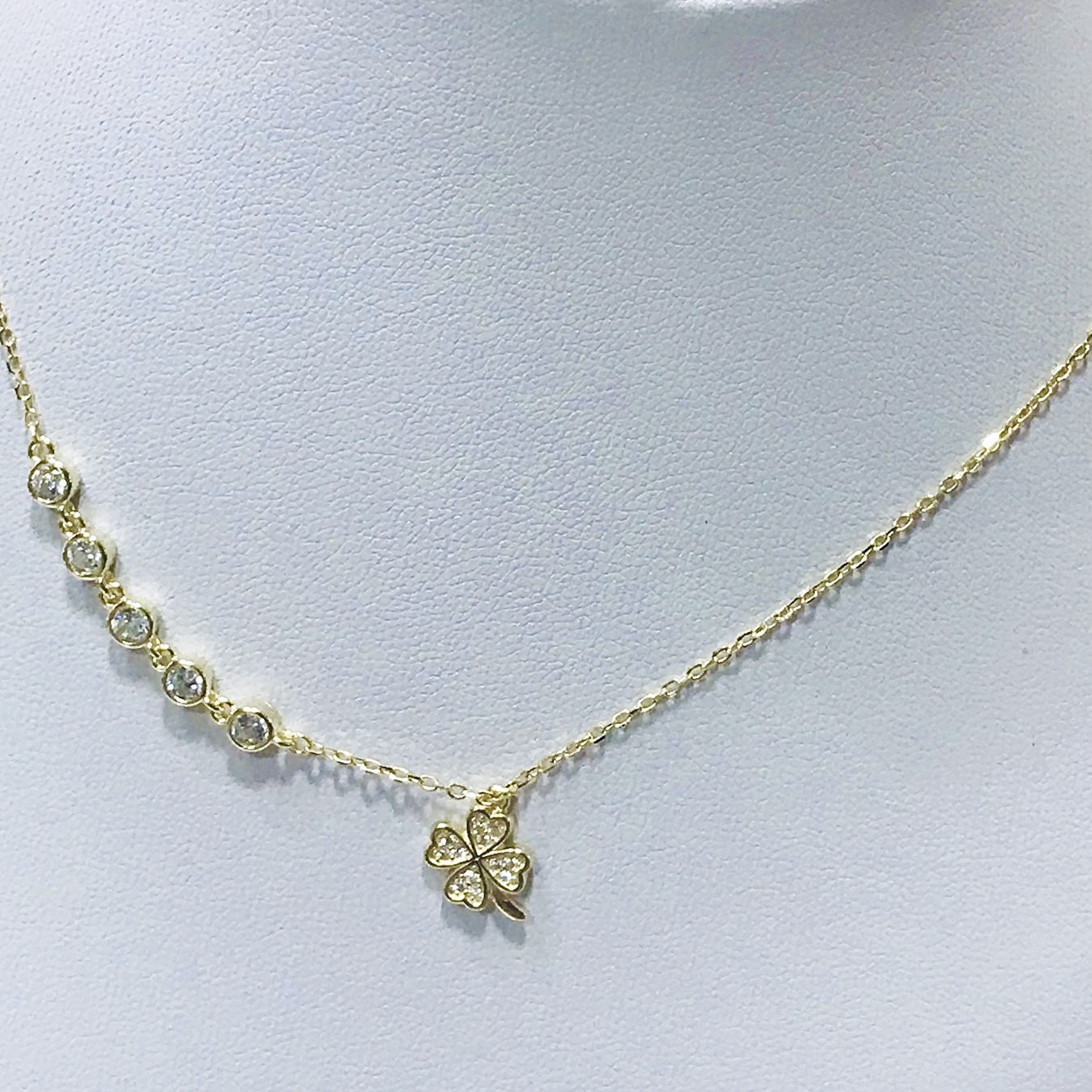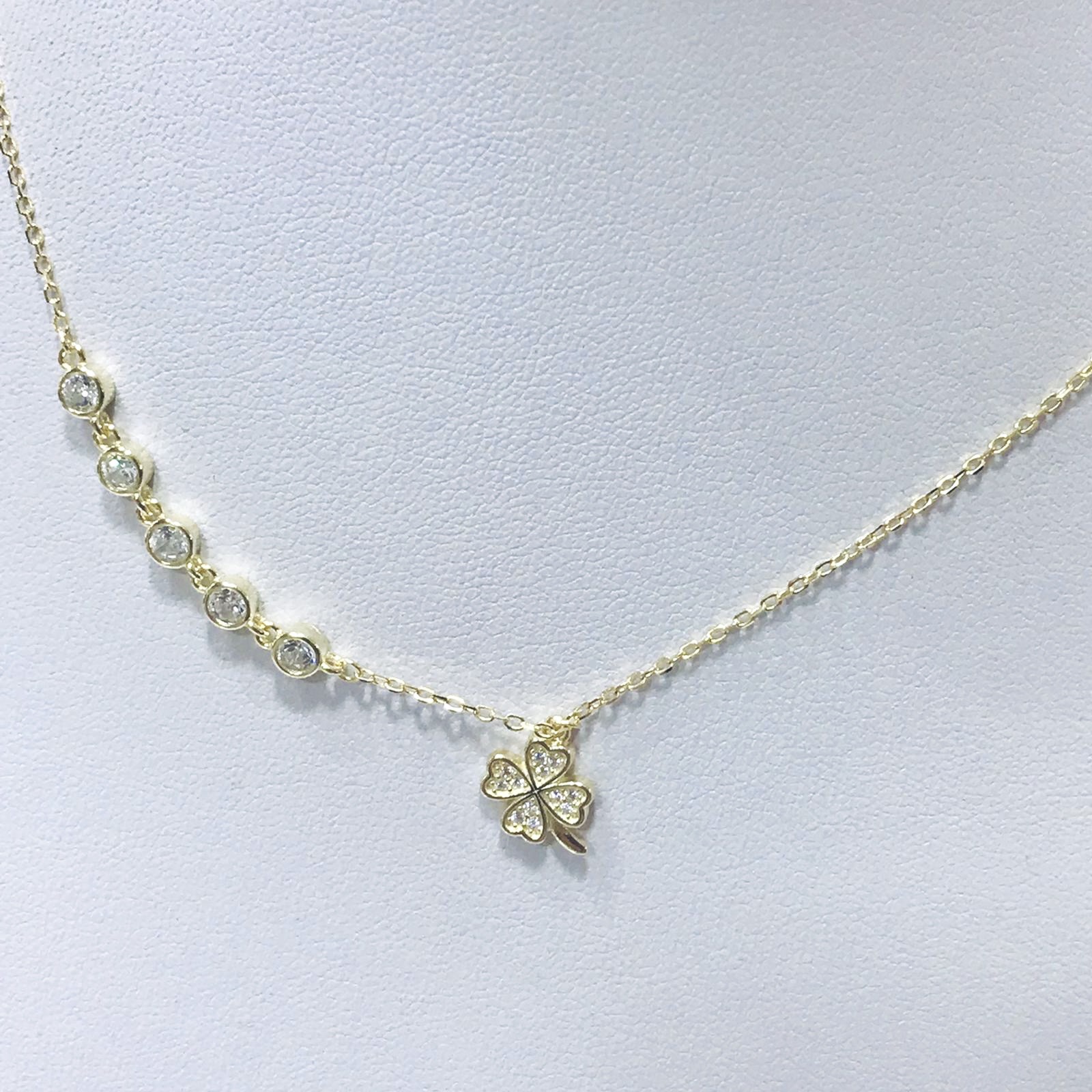 Conjunto goldplated plata 925 cadena y dije trebol con dijes en riel y diamantinas italianas