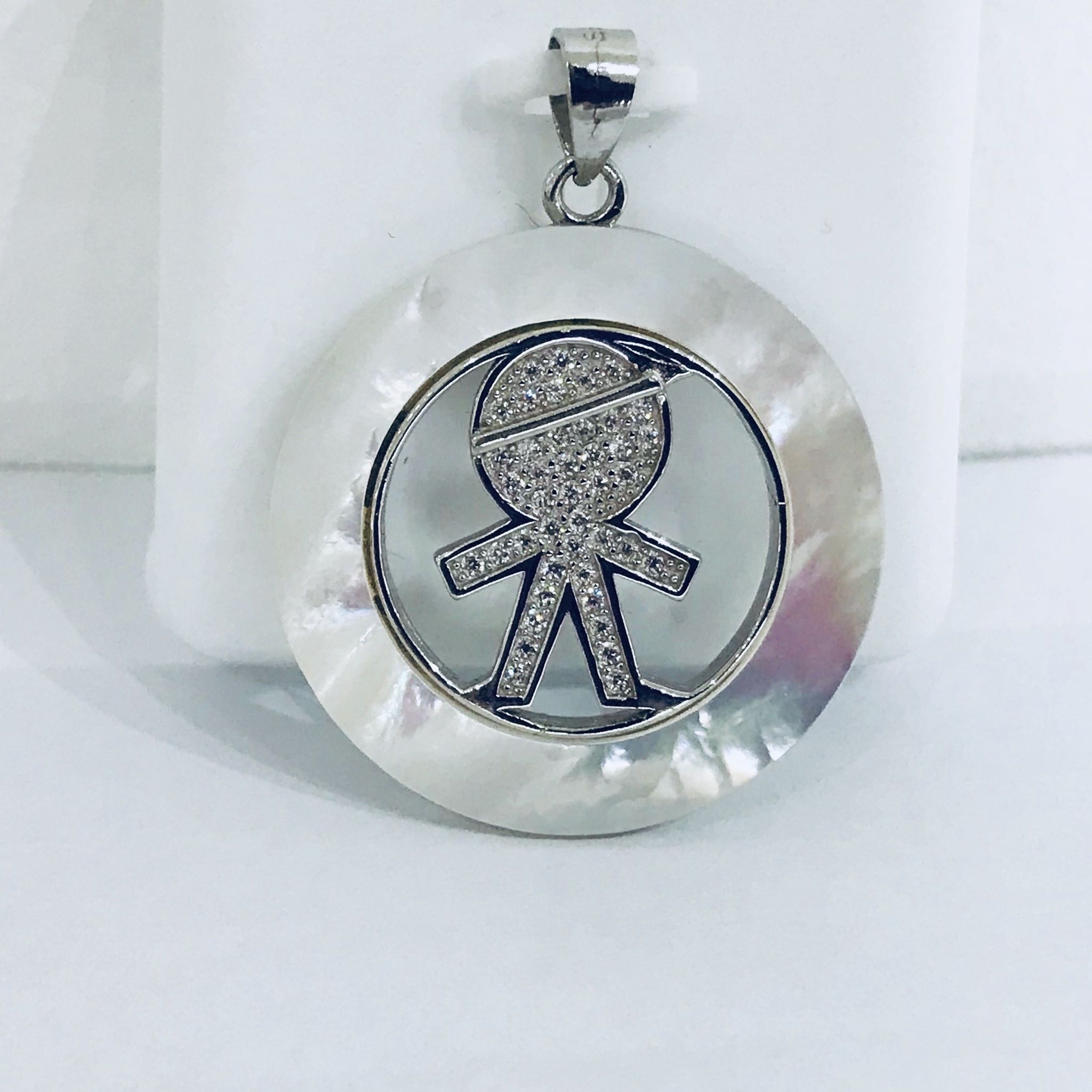 Dije plata 925 nacar diamantina italiana .
