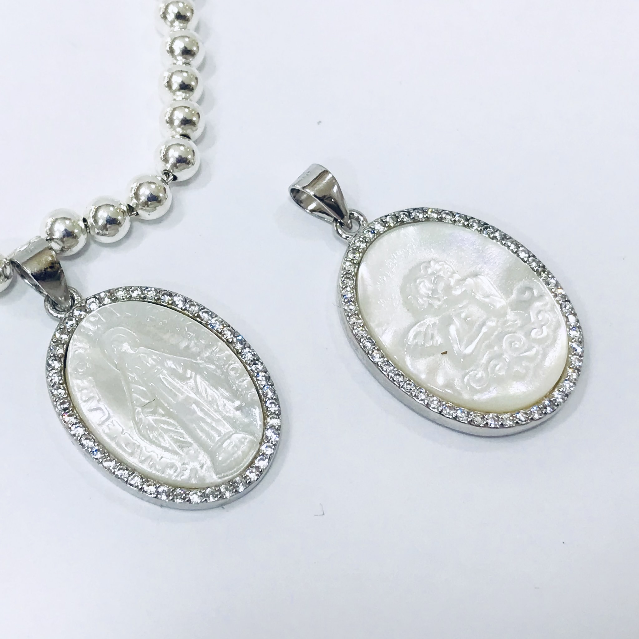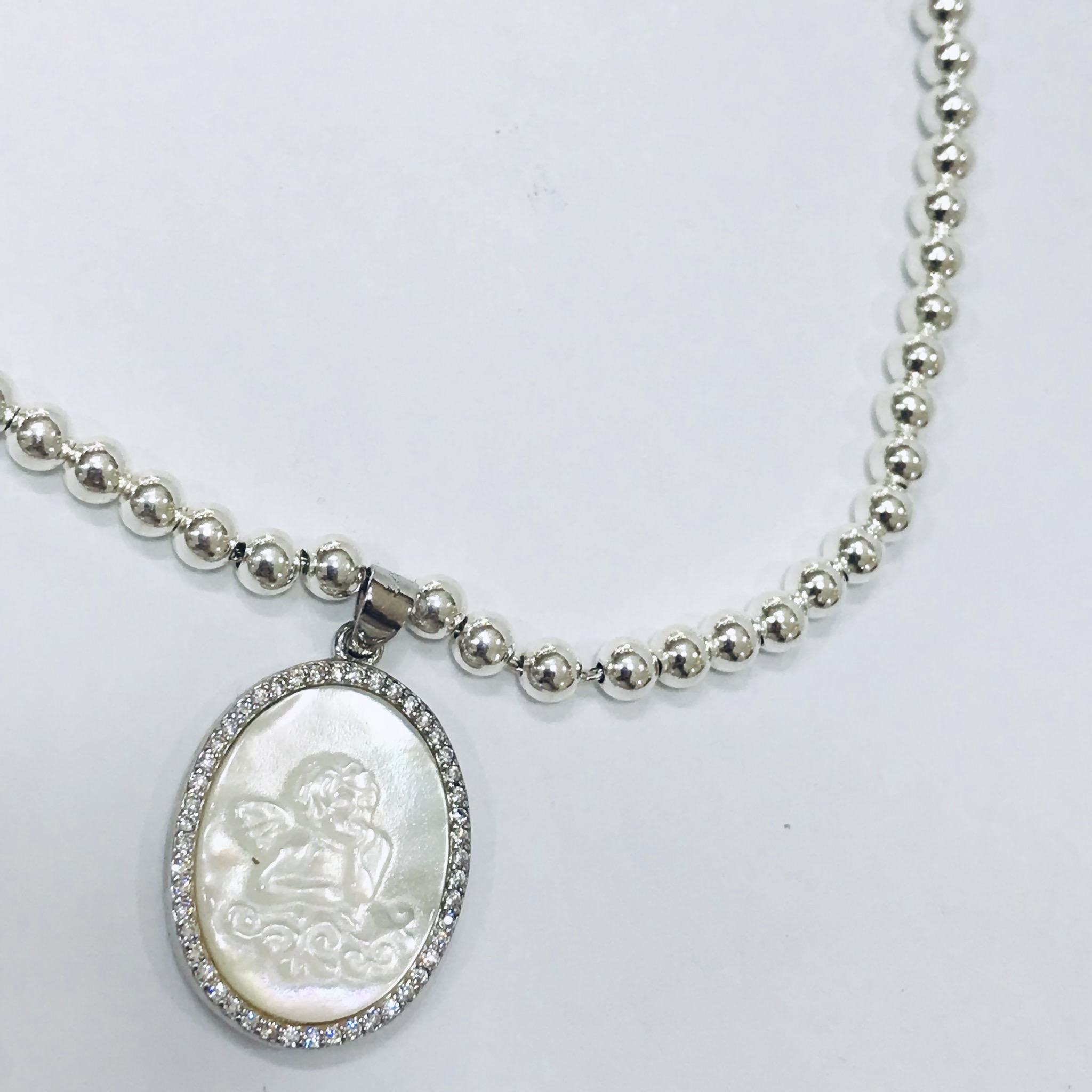 Medalla plata 925, nacar imagen Angel de la guarda bordes diamantina italiana