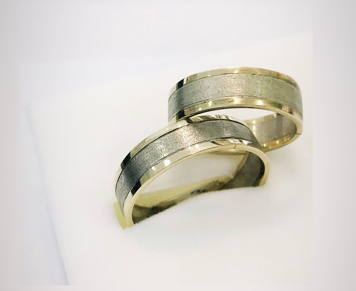 Par alianzas oro satinadas centro , 5 mm x 1 .