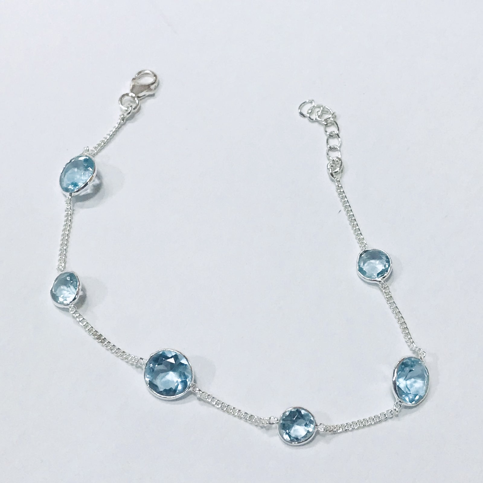 Pulsera plata 925 piedra topacio azul