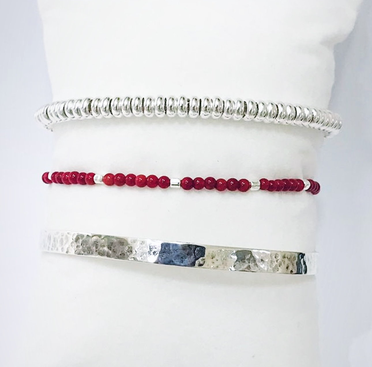 Pulsera piedra natural coral, plata 925