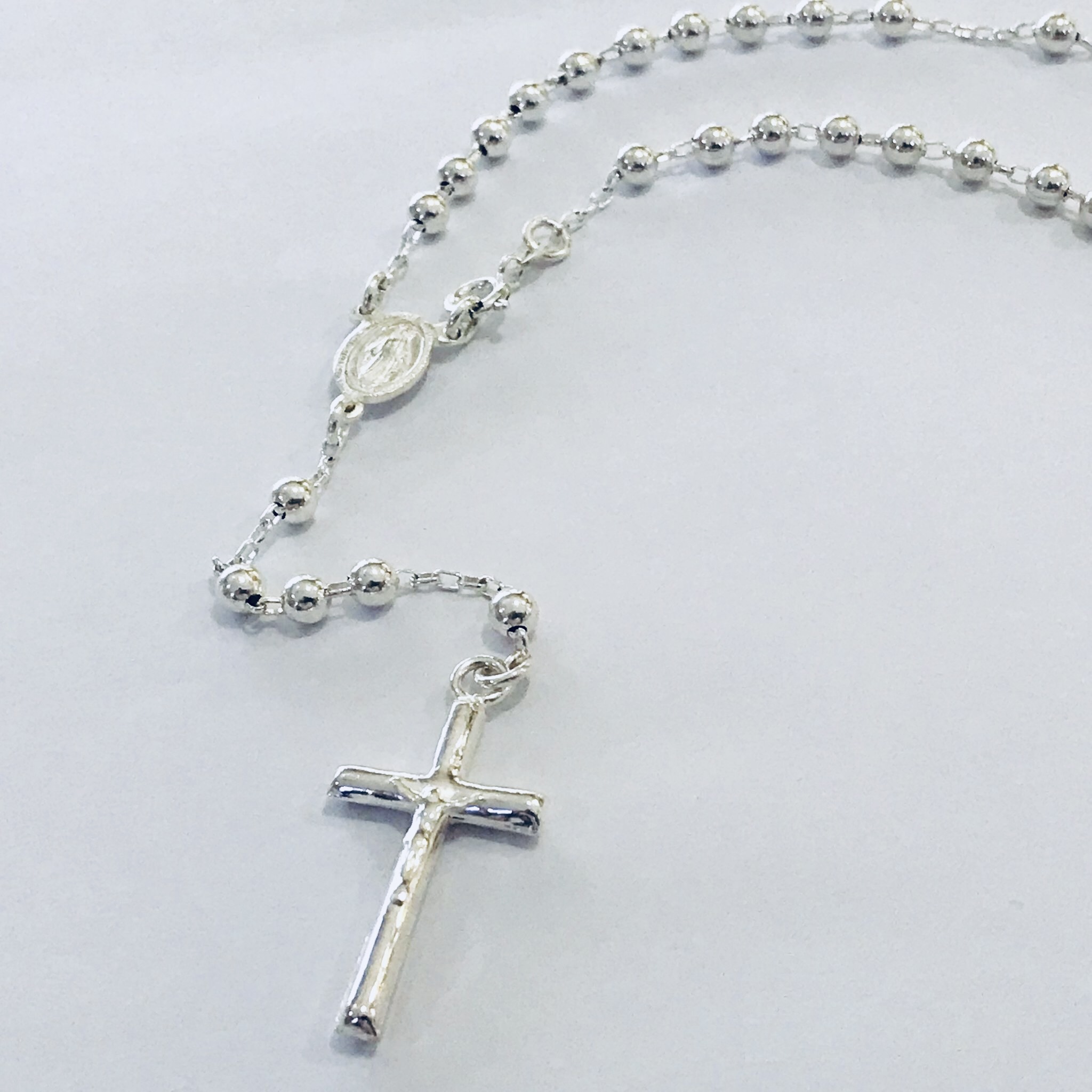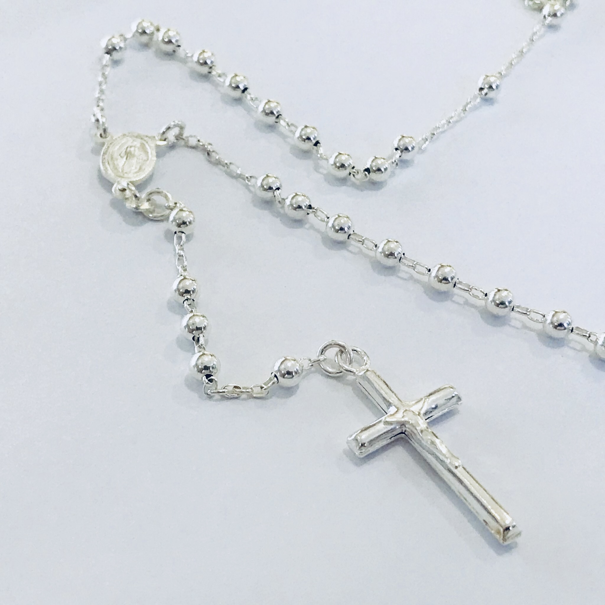 Rosario plata , virgen milagrosa , cruz cristo .